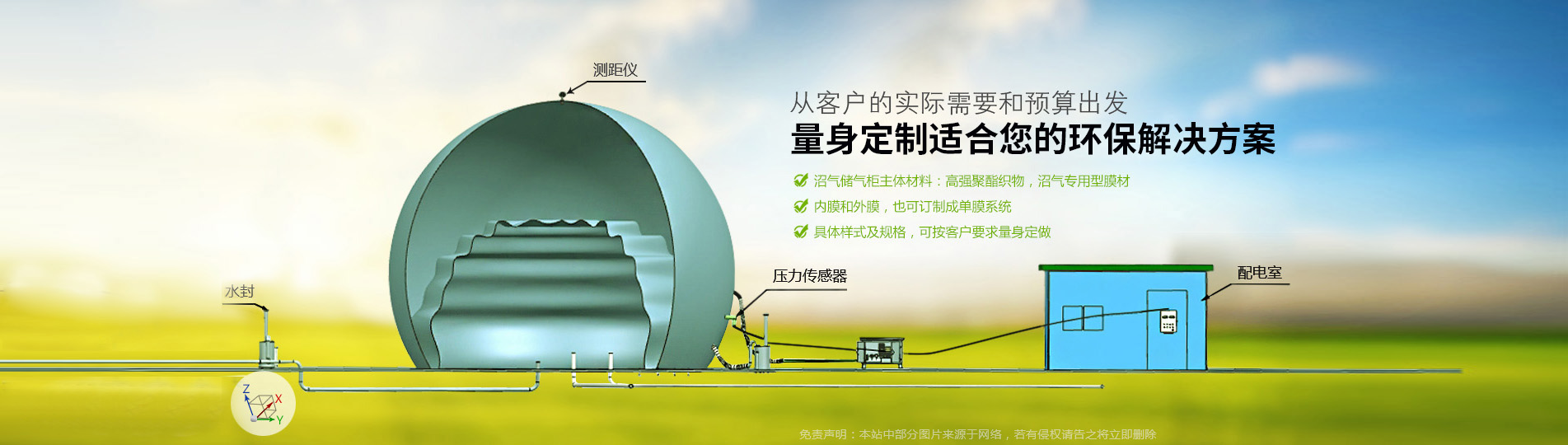 • 雙膜儲氣柜——養殖場行業污水處理沼氣工程中 近幾年,大中型沼氣工程是處理高濃度有機廢水,廢物,治理環境和生態農業建設必不可少的工程設施。它以畜禽糞便處理為主要目的,以厭氧消化為主要技術環節,以糞便資源化綜合利用為效益保障,集環保、能源、資源再利用為一體,將農林...